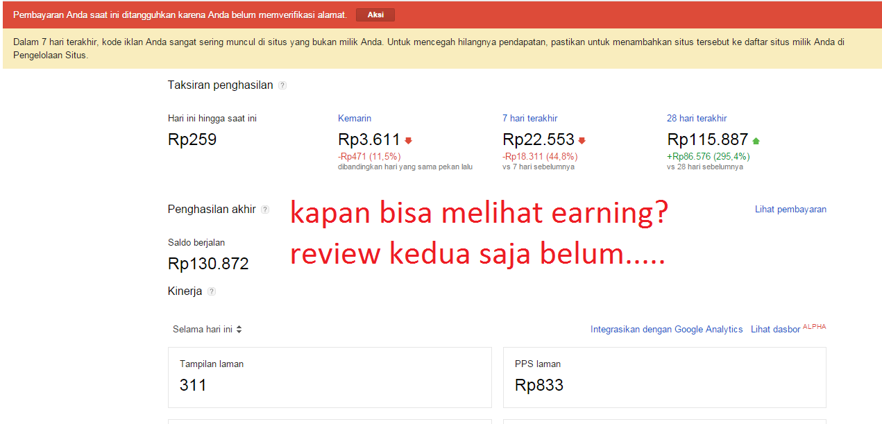 Lama waktu review ke 2 mendaftar google adsense setelah pasang kode